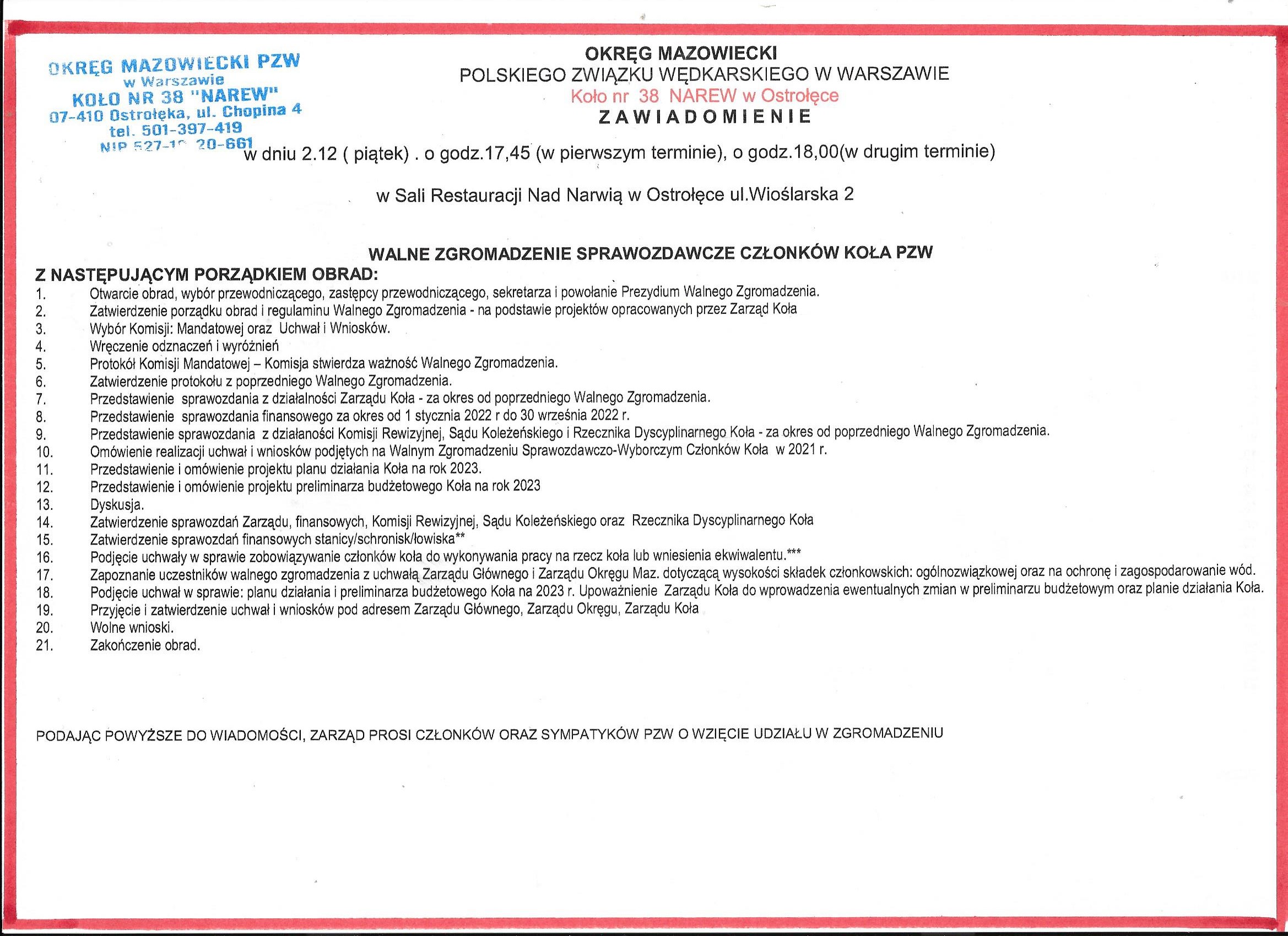 PZW Koło NAREW w Ostrołęce