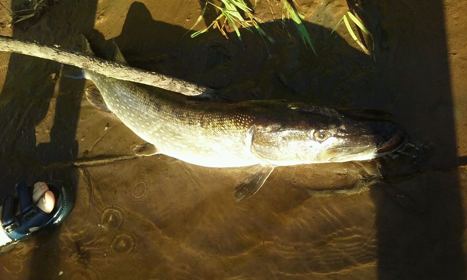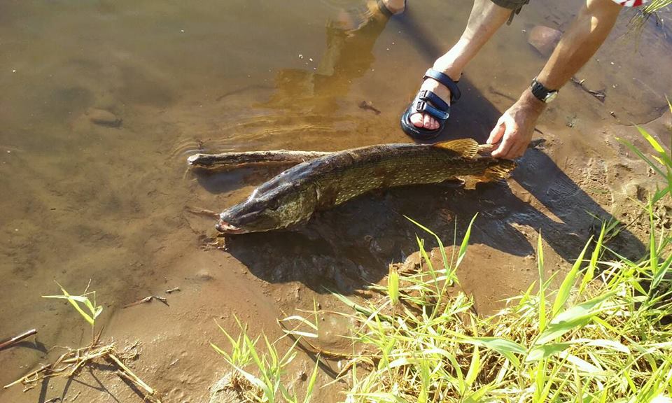 W niedzielę, na „starej plaży” nad Narwią jeden z naszych kolegów złapał w ręce szczupaka około 80 cm. Ryba ledwo poruszała się, prawdopodobnie temperatura powietrza i wody spowodowała śnięcie ryby.